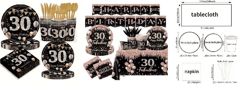 Kağız doğum günü kartı tort bəzəkinin əsasını təşkil edir: Əsas kart "30-cu iltoya" kimi sözlərə əsaslanır və şampan kuboku forması ilə uyğun gəlir. Ölçüsü böyükdür və əsas tortu bəzəmək üçün uyğundur. Dairəvi "30" loqotipi, ulduzlar, taclar və digər kiçik kartlar, digər kiçik kartlar, altındakı bambuk çubuqlarından hazırlanmış, istifadəsi üçün daxil edilə bilən bambuk çubuqlarından hazırlanmışdır.