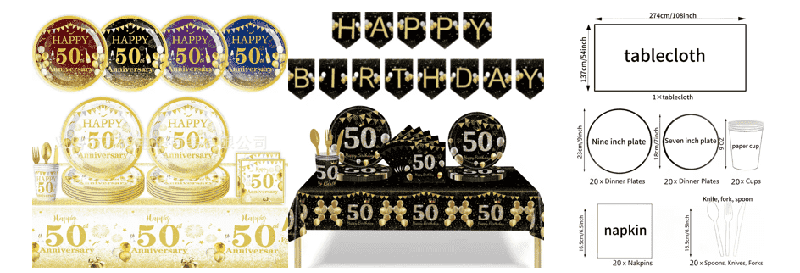 Kağız Ad günü Topçu: Cake Dekorasiyasının əsas maddəsi kimi, əsas kart "Doğum günün mübarək 50 yaşına qədər" sözləri, atəşfəşanlıq, ulduzlar, ad günü şapkaları və digər formalarla əsas tort bəzəklərinə uyğun gəlir. Dəstəkləyən "50", xeyirli buludlar, tac və digər mini kartlar, qalınlaşdırılmış kartondan hazırlanmış və möhkəm bambuk çubuqları ilə uyğunlaşan, incə detallarla kubok və desert masaları ilə bəzədilə bilər.