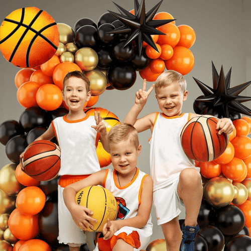Basketbol şarı çələng dəsti idman ruhunun simvoludur. Bir neçə lateks şar və bir neçə folqa şarı ilə gəlir. Basketbol mövzusunda olduğu kimi, bu dəstin rəngləri əsasən narıncı və qaradır və müxtəlif təbəqələr yaratmaq üçünmetal qızıl lateks şarlardə əlavə olunur. Onun ümumi üslubu çox cəlbedicidir, partiyanızın atmosferini dərhal artıra bilər.