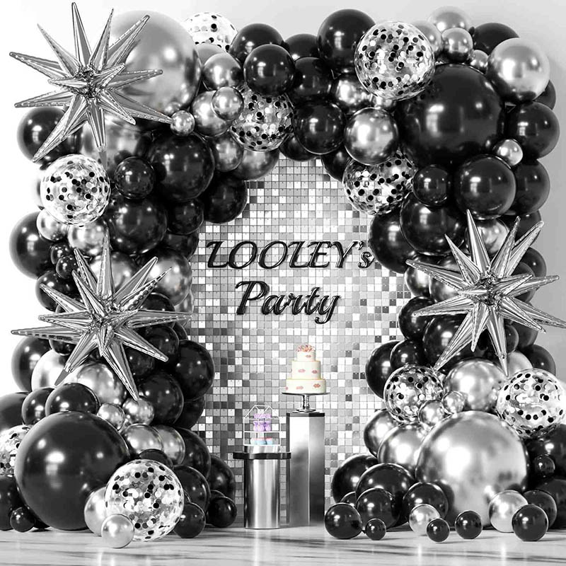4.Private və eksklüziv xüsusi qara və gümüş balonları Garland dəstləri.