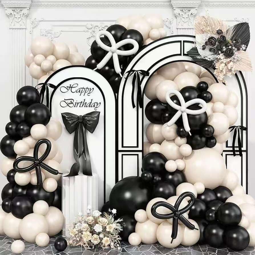 Bu Bow Balloon Arch Garland hazırda müxtəlif şar rənglərində mövcuddur. Ən yeni Ağ və Qara Balon Arch Garland, ən populyar rəng olduğu üçün müştərilər arasında məşhur bir seçimdir. Ağ və qara balon çələng çələng, xoşbəxt bir ad günü arxa planı ilə gözəl bir cüt cüt. Bow vurğu, partiyanıza parıldamaq və cazibədar bir toxunuş əlavə edərək, ümumi doğum günü balon arch setini artırır.