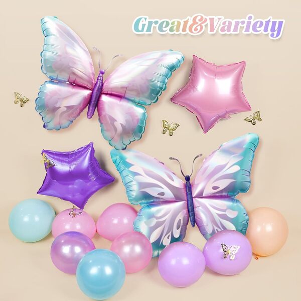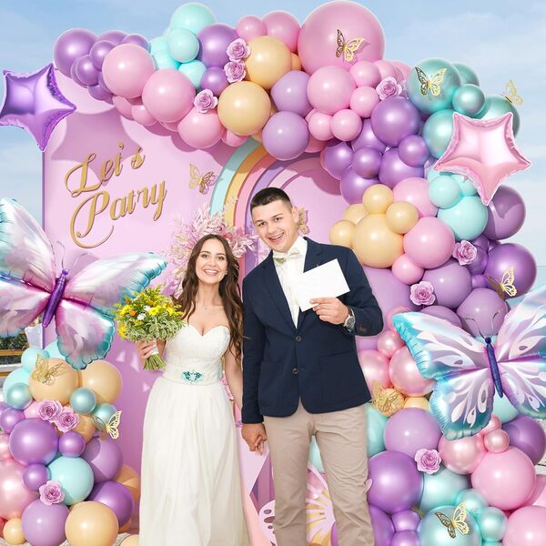 Kəpənək Balloon Arch Kit: Arch dəsti rəngarəng və göz oxşayan, müxtəlif folqa balonları və lateks balonlarından ibarətdir. Bunu təşkil edərkən naxışlar və fərqli mətnlərlə fon lövhəsi əlavə edin və ətrafındakı şarları əhatə edin. Tədbirdə atmosferin yaradıcısıdır. Qarşısında foto çəkmək çox gözəl görünəcəkdir.