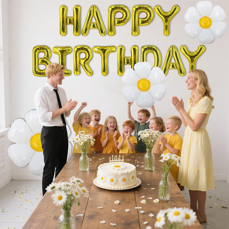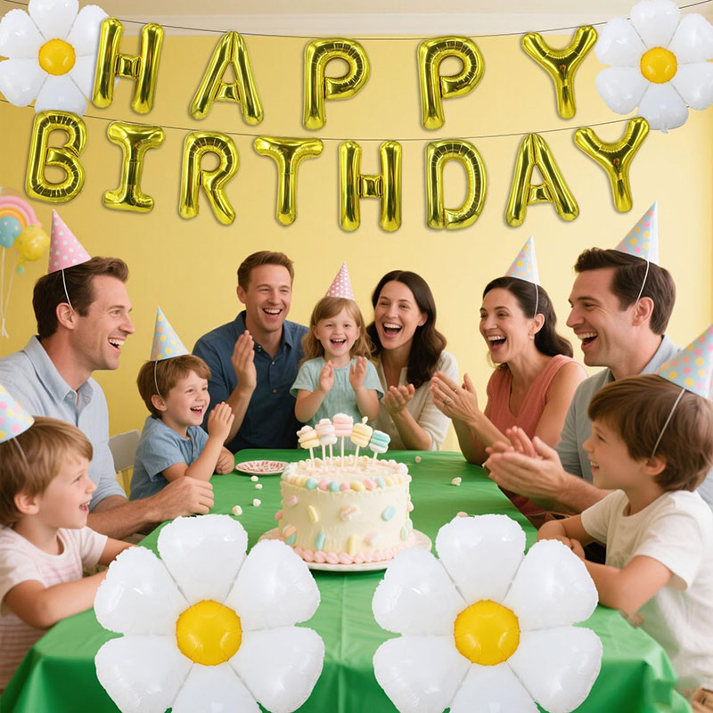 Daisy formalı folqa balonları təkrar emal edilə bilər və düz və təyin olunmamışdır. Satın alındıqdan sonra, onlardan istədiyiniz kimi istifadə edə bilərsiniz, ya da hava və ya helium ilə şişir.