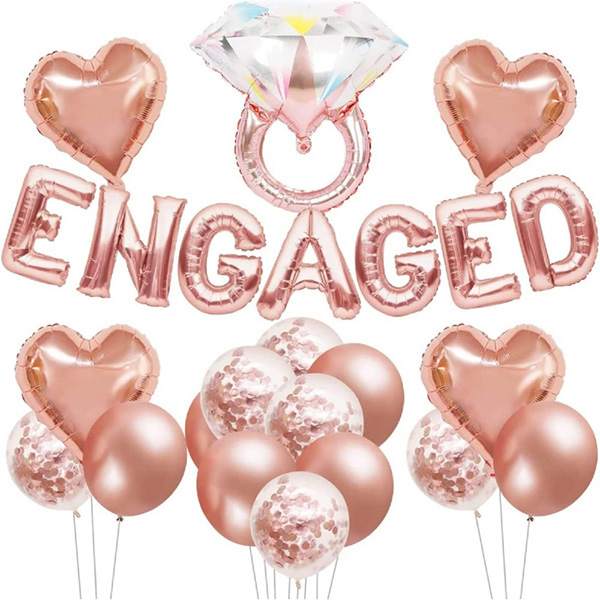 Bu almaz üzük folqa balonu kiçik dəsti, böyük bir almaz üzük folqa balonu, 2 ürək şəkilli folon balonları və 2 dəyirmi folon balonları da daxil olmaqla 5 folqa balonundan ibarətdir. Bu kiçik dəsti kiçik partiyalarda, o cümlədən nişan partiyası bəzəkləri, gəlin qeyd etmələri, toylar və s. Üstəlik, bu folqa balonu dəsti hava və helium ilə doldurula bilər və heliumla doldurulduqdan sonra havada üzən partiyanın şən atmosferini artıra bilər.