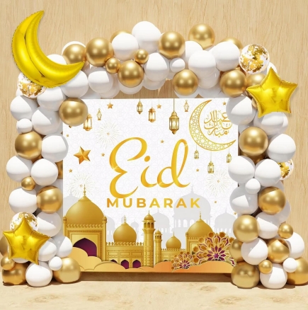 Yeni təqdim olunan Qurban Bayramı Balon dəsti, fon bezləri, süfrə və digər məhsulları əvvəlki əsas ehtiyat hissələrə əlavə edir. Fon bezi, zərif Aypara, ərəb "Eid Mubarak" və Lonicera Japonica Interweave kimi klassik bayram əl-fitr elementləri ilə hazırlanmışdır. Arxa planı rəngi yumşaq ağ və ya yüngül dəvə rəngidir, bu da festivalın müqəddəs hissini qoruyur, həm də ailə toplanmasının isti atmosferini də birləşdirir. Qonaq otağının divarına, giriş və ya alış-veriş mərkəzinin fəaliyyət sahəsinə asılır, mürəkkəb quraşdırma olmadan səhnənin vizual mərkəzinə çevrilir. Yeni əlavə edilmiş süfrə, yağdan qorunan və suya davamlı pe materialından hazırlanmışdır, səthdə çap edilmiş simmetrik həndəsi xətləri və kənarlarda dotted. Yemək masasında, giriş masasına və ya qida köşkünə qoyulur. Partiyada yalnız şorba və desert ləkələri ilə məşğul ola bilər, eyni zamanda şənliklər şar zəncirləri və bayraqlar kimi bəzək əşyaları olan bəzək əşyaları olan bəzək əşyaları olan bəzək əşyalarını masaüstün təfərrüatlarına daha çox inteqrasiya edə bilər, hər yer bayramı və bayramı sevindirir.