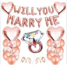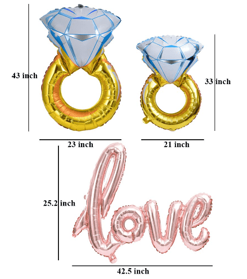 Kostyumun üslubu əsasən almaz nişan üzüyünün folqa balonlarından hazırlanır, ulduz folqa balonları və temalı dəyirmi şarlar ilə uyğunlaşdırılır və ümumi uyğunluq sadə və atmosferlidir. Eyni zamanda, o, fərdi fərdiləşdirməni dəstəkləyir və etiraf və təklif atmosferini daha da gücləndirmək üçün I DO və MARY ME kimi hərf folqa şarlarını əlavə etmək kimi ehtiyaclara uyğun olaraq şarların növünü və sayını tənzimləyə bilər.