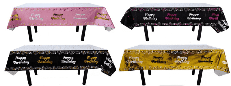 Rainbow Rəngi, cizgi filmləri və tort naxışları olan folqa süfrəsi, uşaq doğum günləri üçün uyğundur; Qızıl, gümüş, gümüş, lazer rəngli ulduzlar və hərf nümunələri olan, böyüklər ad günü partiyaları, yubiley qeyd etmələri, qız yoldaşları partiyaları və s.
