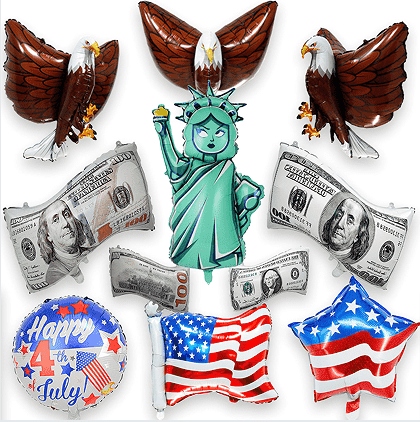 Onlar həm praktiki, həm də ətraf mühitin mühafizəsi nəzərə alınmaqla dəfələrlə şişirdilə bilər. Dekorasiya prosesində biz müxtəlif xüsusi bayram bəzək elementlərini əlavə etdik. Lateks şarlar incə ulduz zolaqları, beşguşəli ulduz naxışları və ingiliscə "Happy 4th of July" sözləri ilə çap olunub. Folqa balonları üç ölçülü ulduz zolaqları, keçəl qartal və "4" rəqəmi kimi klassik müstəqillik günü formaları yaratmaq üçün istifadə olunur. Dekorasiya effektini daha göz oxşayan etmək üçün bəzi şarlara qızıl toz və payet kimi flaş elementlər də əlavə olunur.