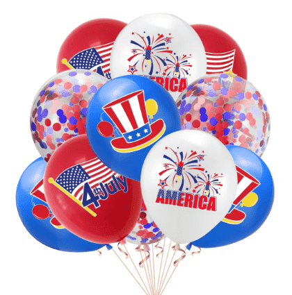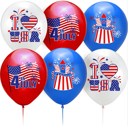 Xoşbəxt 4 iyul şarımız Amerika bayrağının klassik qırmızı, ağ və mavi rənglərini əsas rəng uyğunluğu kimi qəbul edir. Rəngin doyması dövlət bayrağının əsas rənglərini dəqiq şəkildə bərpa edir. Parlaqdır və göz qamaşdırmır və Müstəqillik Günü üçün bütün bəzək üslubları üçün uyğundur.