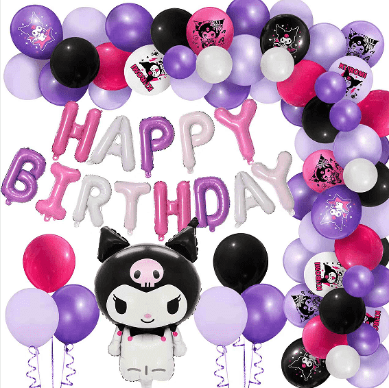 1. Xüsusi Kuromi Party Balonu: Folqa balonu özelleştirme (naxış və forma), lateks balon çap və şar və çələng dəstinin stil dizaynını təmin edin.