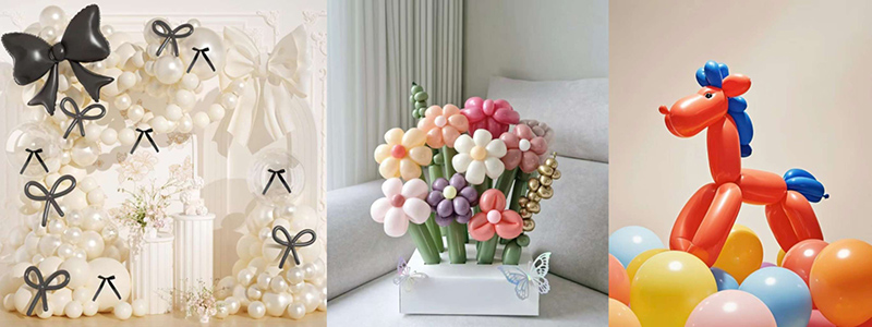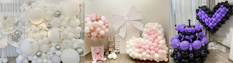 Fərqli ölçülər birlikdə istifadə edilə bilər. Kiçik balonlar bəzək təfərrüatları kimi istifadə edilə bilər. Böyük balonlar bir balon arch və ya bir balon çırpıntı üçün istifadə edilə bilər. Təsiri təəccüblü görünür. Bobo balonları, metal rəngli şarlar və ya folqa balonları ilə istifadə edildikdə, görünüş daha çox təbəqə var. Üslub daha zəngin olur. İstifadəsi çox genişdir. Toylarda istifadə edilə bilər. Doğum günü partiyalarında istifadə edilə bilər. Tətil tədbirlərində də istifadə edilə bilər. Əsas bəzək və ya detal bəzək kimi işləyir.