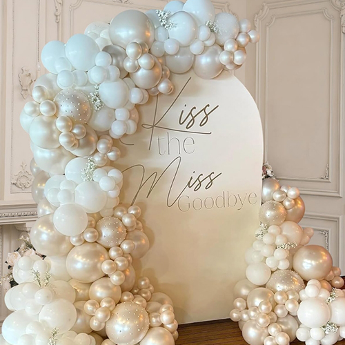 Mirvari gəlin duşu üçün şar arch dəstinə lateks şarlar və əlaqəli aksesuarlar daxildir. Şar bəzəyinizi daha yüksək səviyyəli etmək üçün nəzərdə tutulmuş iki növ mirvari ağ ikiqat qatlı şarlar, həmçinin mirvari yamaqlar var. Əlavə etinci balonlarıqonaqları heyran edəcək girov partiyası üçün gözəl bir fon yaratmaq. Bizimlateks balonları100% təbii rezindən hazırlanır. Balon teksturası qalın, qırılması asan deyil, saf rəngdir. Yüksək keyfiyyətli lateks, şişirdildikdə balonun yaxşı uzanmasına imkan verir. Heliumun əlavə edilməsi şarın üzməsinə səbəb ola bilər, balonun sızmasından narahat olmaq lazım deyil və onların xidmət müddəti kifayət qədər uzundur.