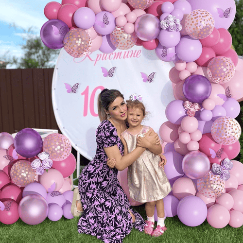 Xüsusi hazırlanmış çəhrayı bənövşəyi şar çələng dəsti NiuN®-də çox asandır, balonları və ya paketləri fərdiləşdirmək istəsəniz də.