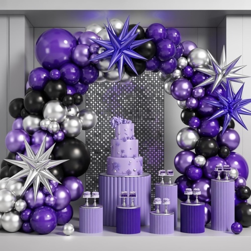 Yüksək keyfiyyətli bənövşəyi və qara şarlar çələng dəstləri sizə qara və bənövşəyi şarları qarışdırıb uyğunlaşdırmağa imkan verir. Onlar qara və bənövşəyi şarlar gümüş şarlar və ya gümüş folqa şarları ilə birləşdirilə bilər ki, balonları çələng arch dəstləri vurğulayır. Məzun gecələri, böyüklər mərasimləri və digər əlamətdar bayramlar üçün idealdır, gəncliklə vidalaşarkən və yetkinliyə addım atarkən ritual hissini təcəssüm etdirir. Onlar həmçinin qara və bənövşəyi şarlar qızıl şarlar və ya qızıl folqa balonları ilə birləşdirilə bilər. O, korporativ yubileylər və yeni mağaza açılışları kimi hallar üçün idealdır, çünki yüksək səviyyəli, nüfuzlu brend imicini çatdırmaqla yanaşı, peşəkarlıq və incəlik nümayiş etdirir. Futuristik bir görünüş yaratmaq üçün onları mavi şarlar ilə də birləşdirə bilərsiniz. Bu şar dəstləri xüsusilə elektron idman, moda və elmi-fantastik mövzulu partiyalar üçün çox uyğundur və heyrətamiz vizual təsir təqdim edir.