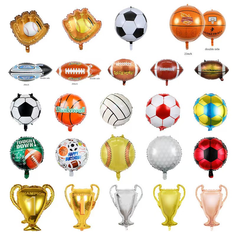 Dizayn idman avadanlıqlarını modelləşdirir, basketbol, futbol, dumbbells, kuboklar, idman fiqurlarının siluetləri, "qalib", "qol" və "qol" və "çempion" və digər təşviq məktubları əhatə edir. Tək böyük ölçülü (18-36 düym) balon mürəkkəb uyğunluq lazım deyil və fəaliyyətin mərkəzində və ya girişində asıldıqda vizual fokus ola bilər. Xüsusilə genişmiqyaslı hadisələr, açıq idman fəaliyyəti və şəhərcik idman oyunları üçün şənlənmə kimi səhnələr üçün uyğundur, dərhal hadisə yerinin coşğusunu alovlandırır.
