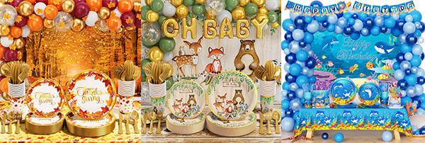 Niun® Party bəzəkləri və digər üslublar müxtəlif üslub yaratmaq üçün partyr süfrələri ilə birləşdirilə bilər.