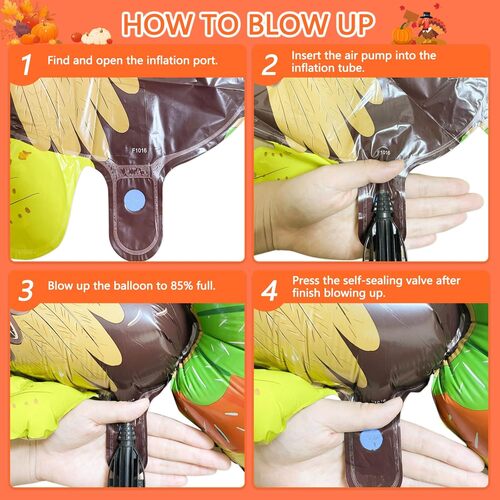 Şükran günü folqa balonlarını şişirmək və bağlamaq çox asan olacaq. Şişirmək üçün əl nasosundan və ya elektrik nasosundan istifadə edə bilərsiniz və sonra onu hər bir şarın başlığında olan öz-özünə yapışan yapışqanla möhürləyə bilərsiniz. Möhürləndikdən sonra balon güclü olacaq.