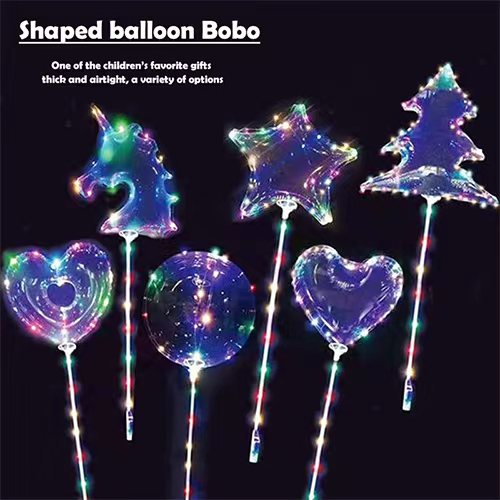 Tutacaqlardan tutmuş akkumulyator qutularına qədər müxtəlif formalara və canlı rənglərə malik LED Bobo Balonlarının bir çox üslubları mövcuddur.
