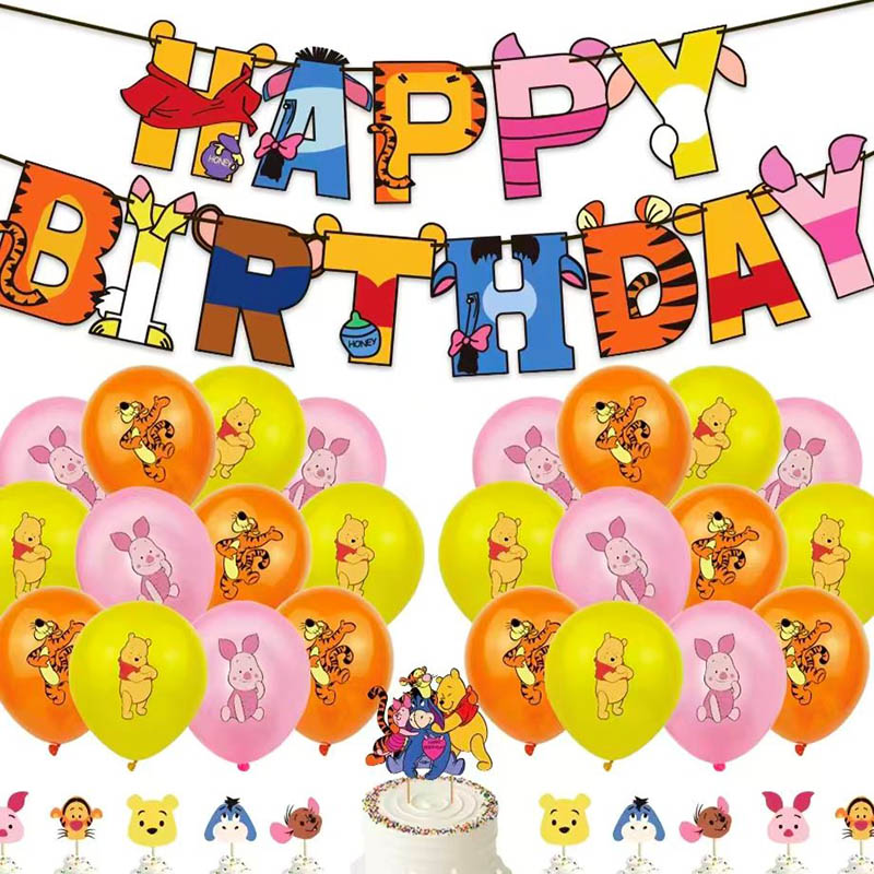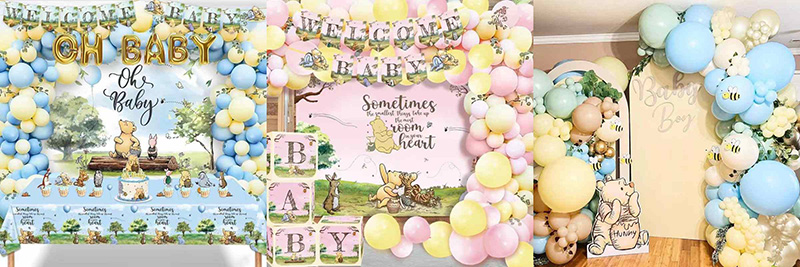 Stil klassik winnie pooh ipinə yönəlmişdir. Bir çox sevimli dostların şəkillərini qarışdırır. Bu dostlara pələng və piglet daxildir. Təzə makaron rənglərində balonlarla gedir. Rənglər yumşaq mavi, çəhrayı, sarı, yaşıl və s. Körpə oğlanlarının partiyaları üçün yaxşıdır. Körpə qızlarının partiyaları üçün də yaxşıdır. Uyğun bir rəng tərzini tapa bilərsiniz. Məsələn, mavi seriya oğlanların günəşli canlılığı göstərir. Çəhrayı seriyalar qızın şirinliyi və incəliyi ilə doludur.